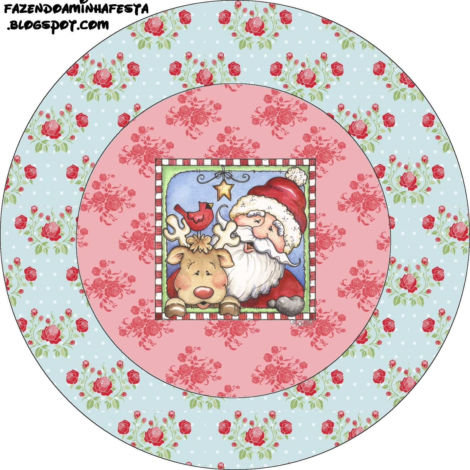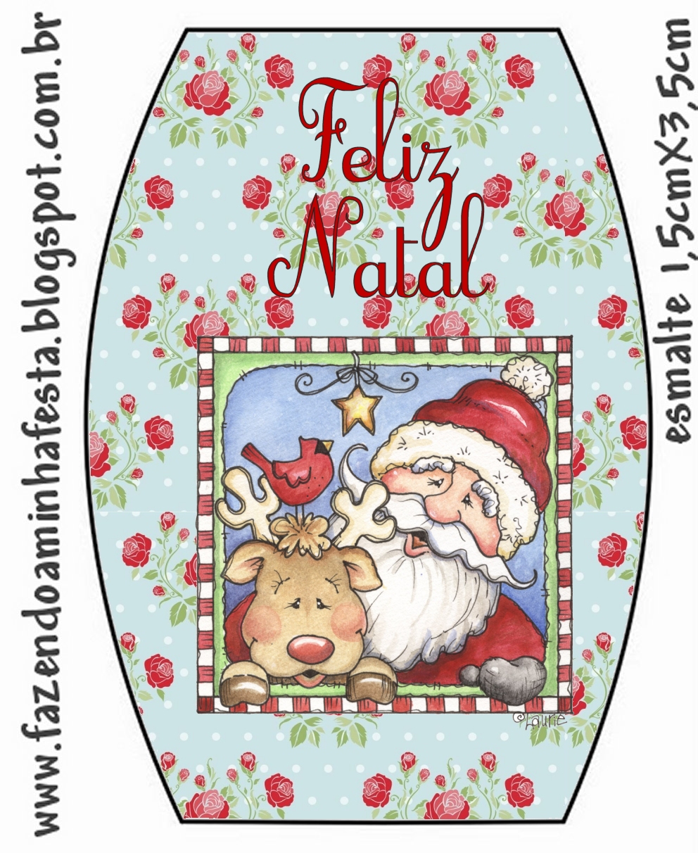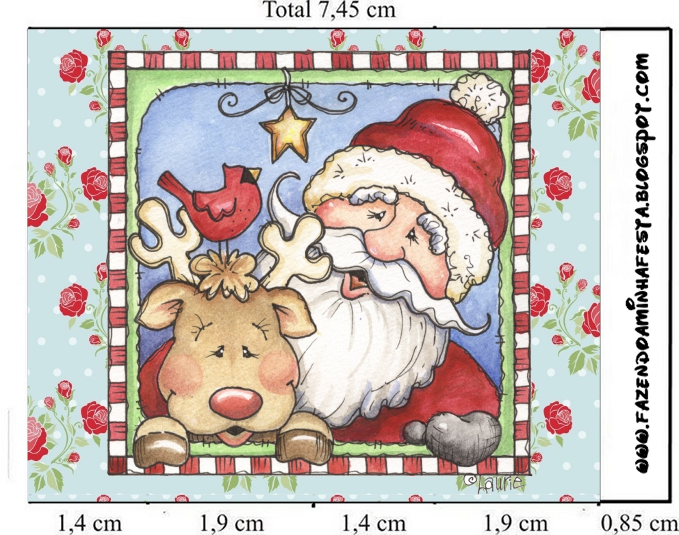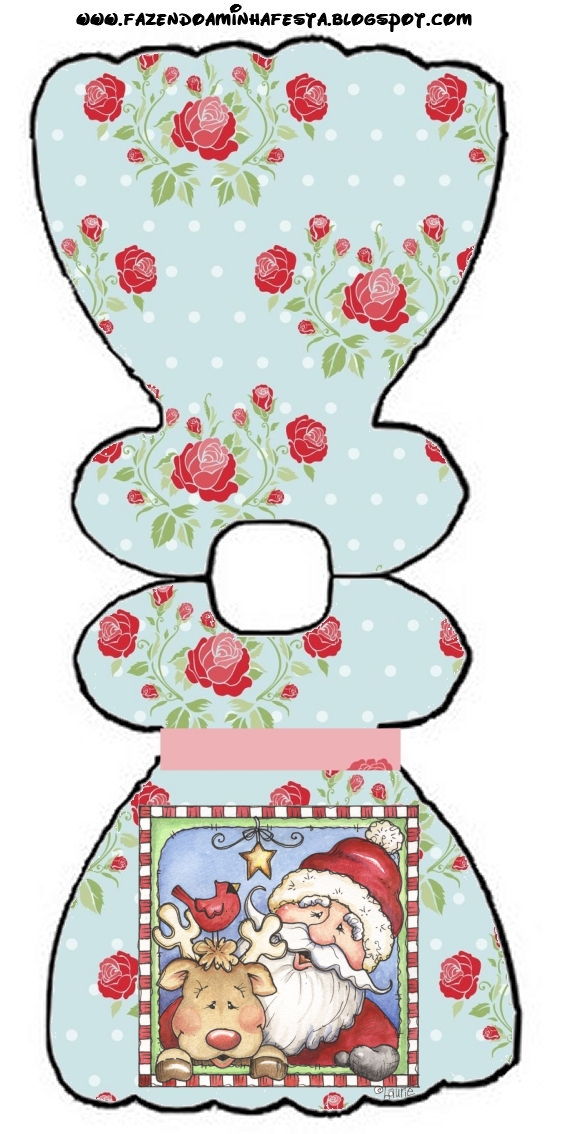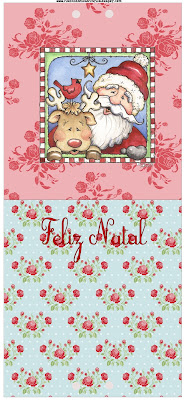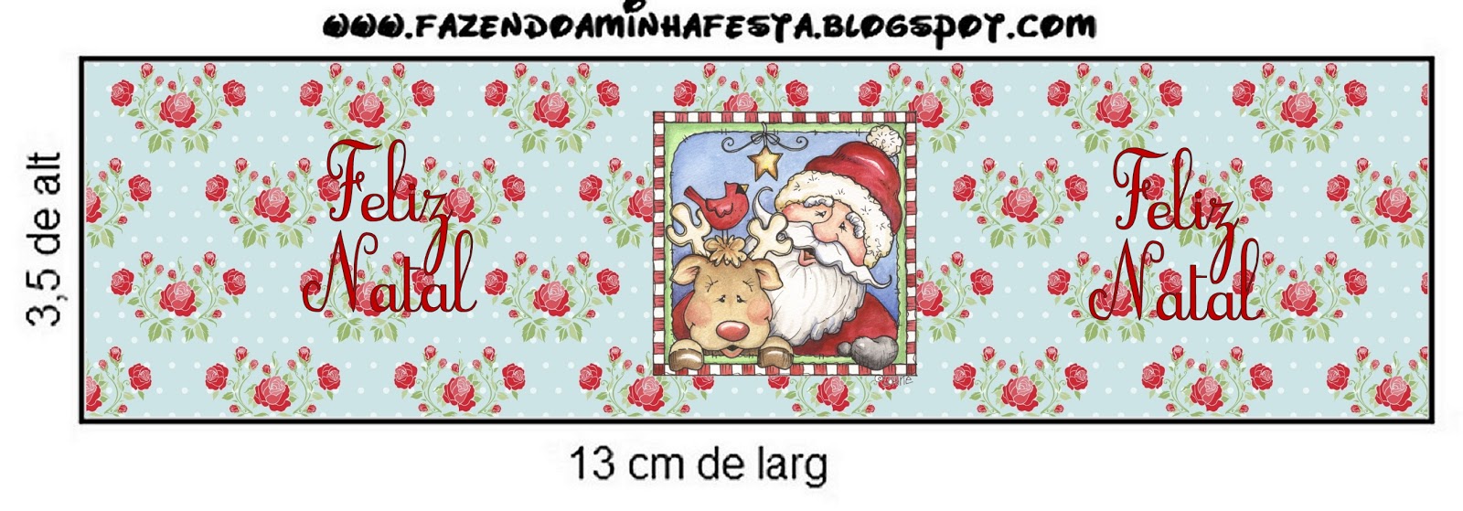 Rótulo Mentos Natal com Papai Noel Azul e Vermelho com Flores: