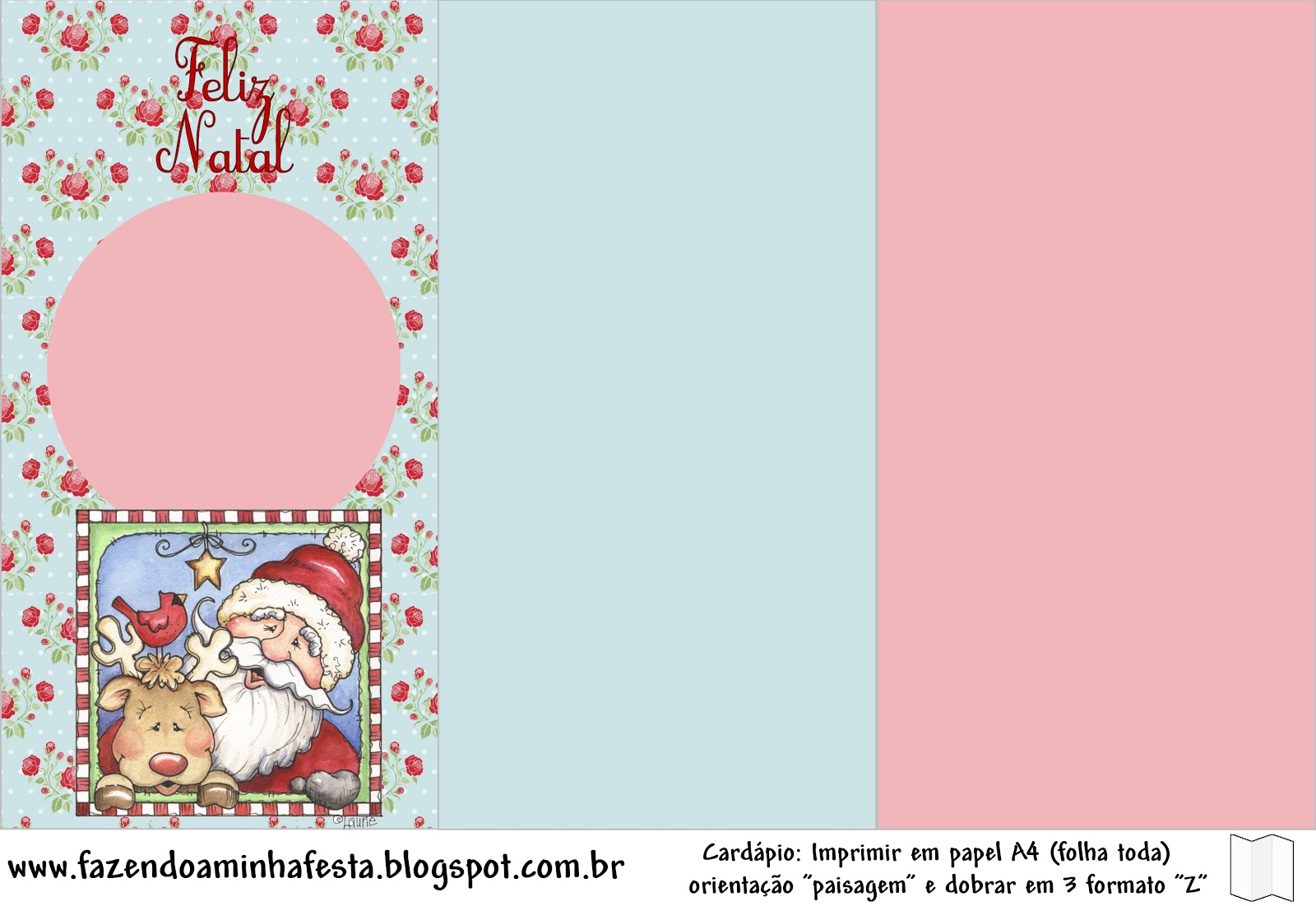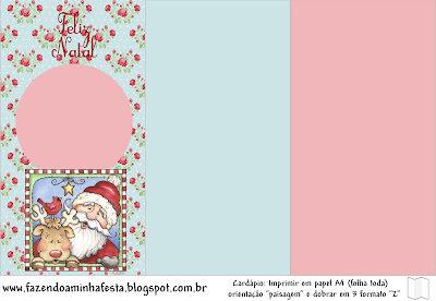 Convite,Cardápio ou Programa em Z Natal com Papai Noel Azul e Vermelho com Flores: