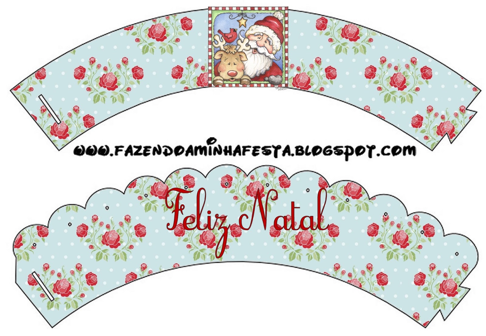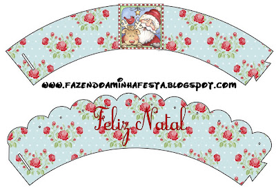 Saias Wrappers para Cupcakes Natal com Papai Noel Azul e Vermelho com Flores: