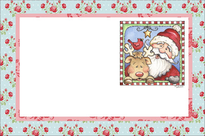 Moldura Convite e Cartão Natal com Papai Noel Azul e Vermelho com Flores: