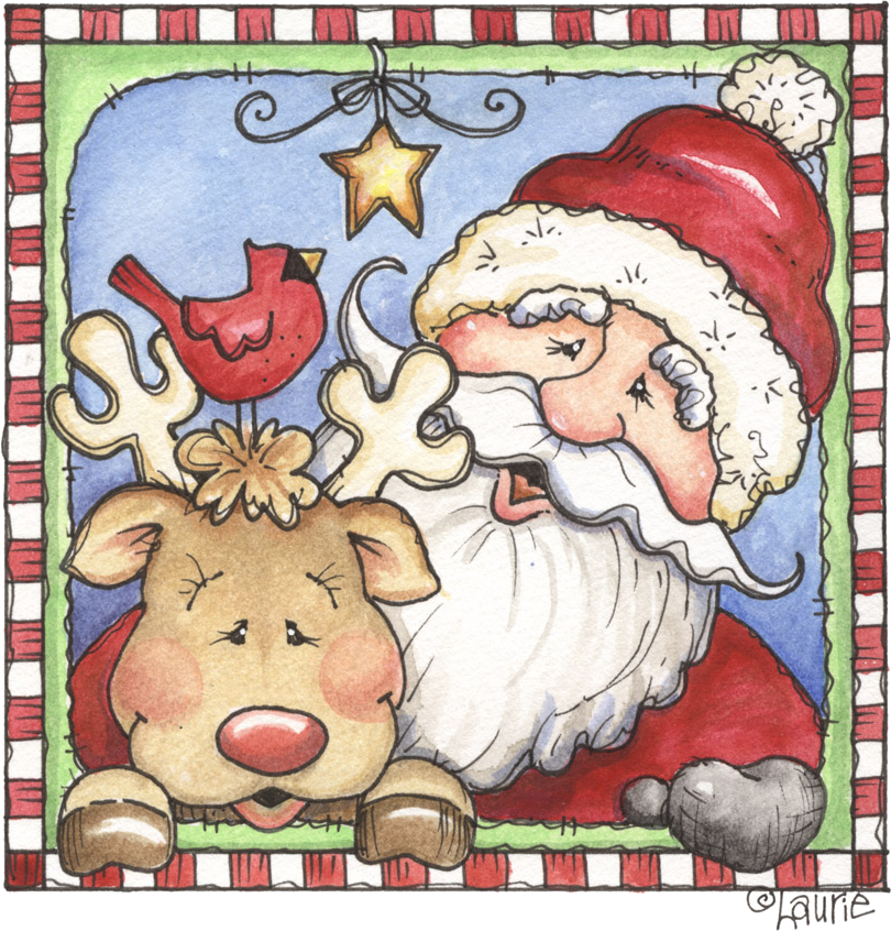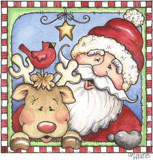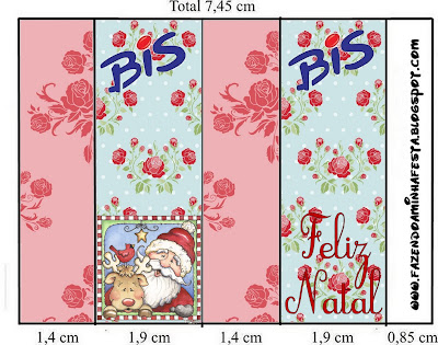 Rótulo Bis Natal com Papai Noel Azul e Vermelho com Flores: