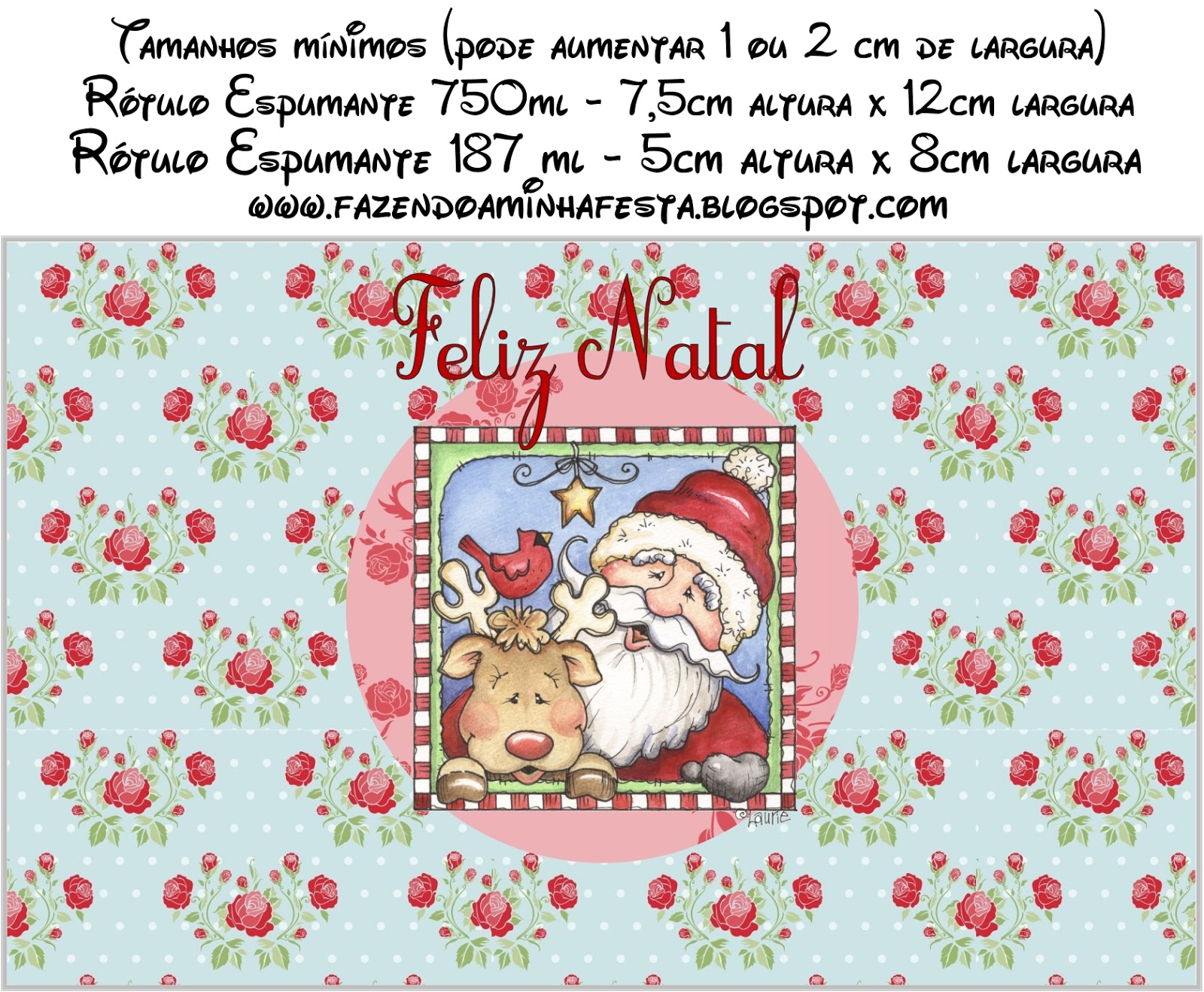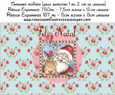 Rótulo Champagne,Vinho e Espumante Natal com Papai Noel Azul e Vermelho com Flores: