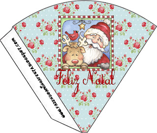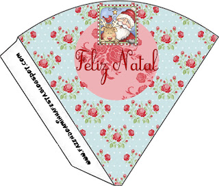 Cone Guloseimas Natal com Papai Noel Azul e Vermelho com Flores: