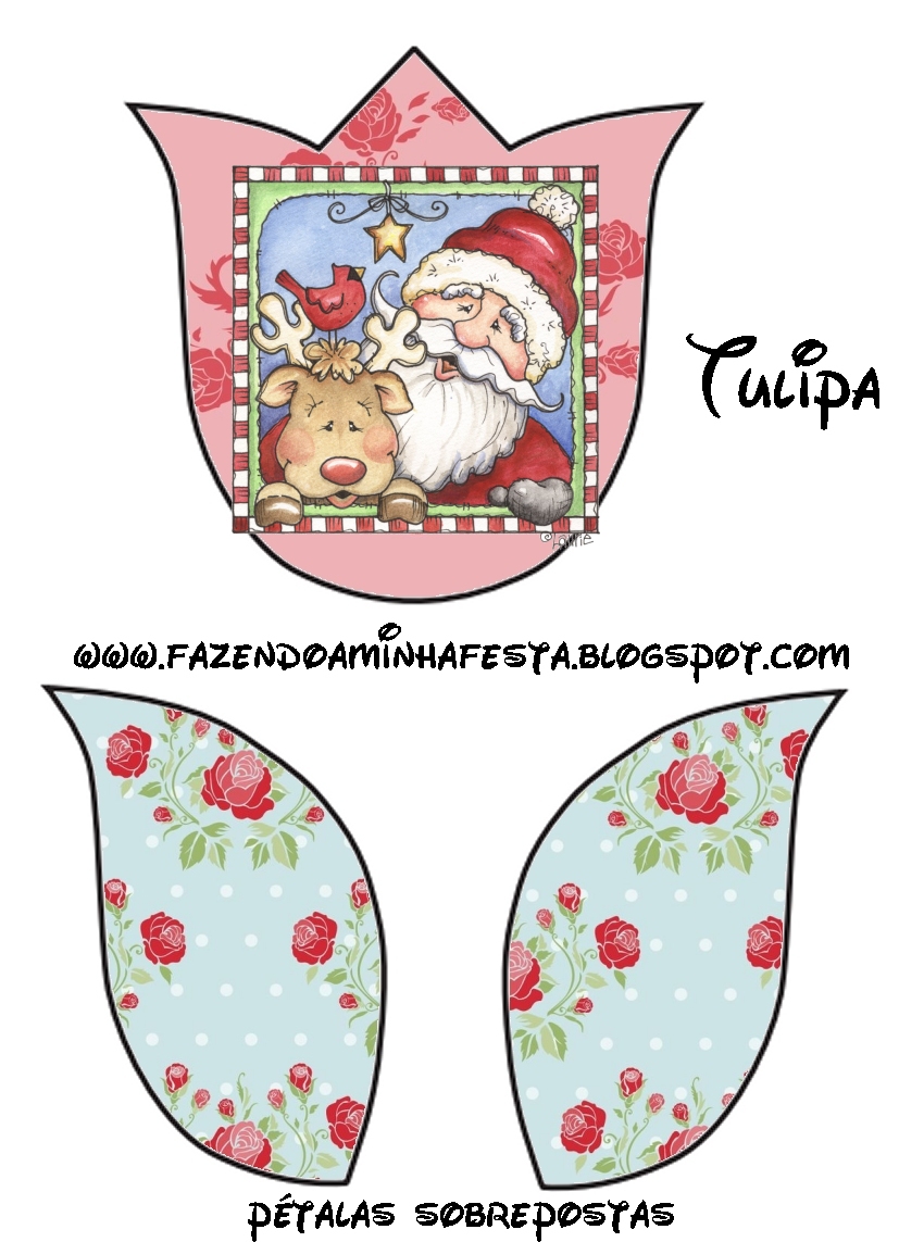 Tulipa Natal com Papai Noel Azul e Vermelho com Flores: