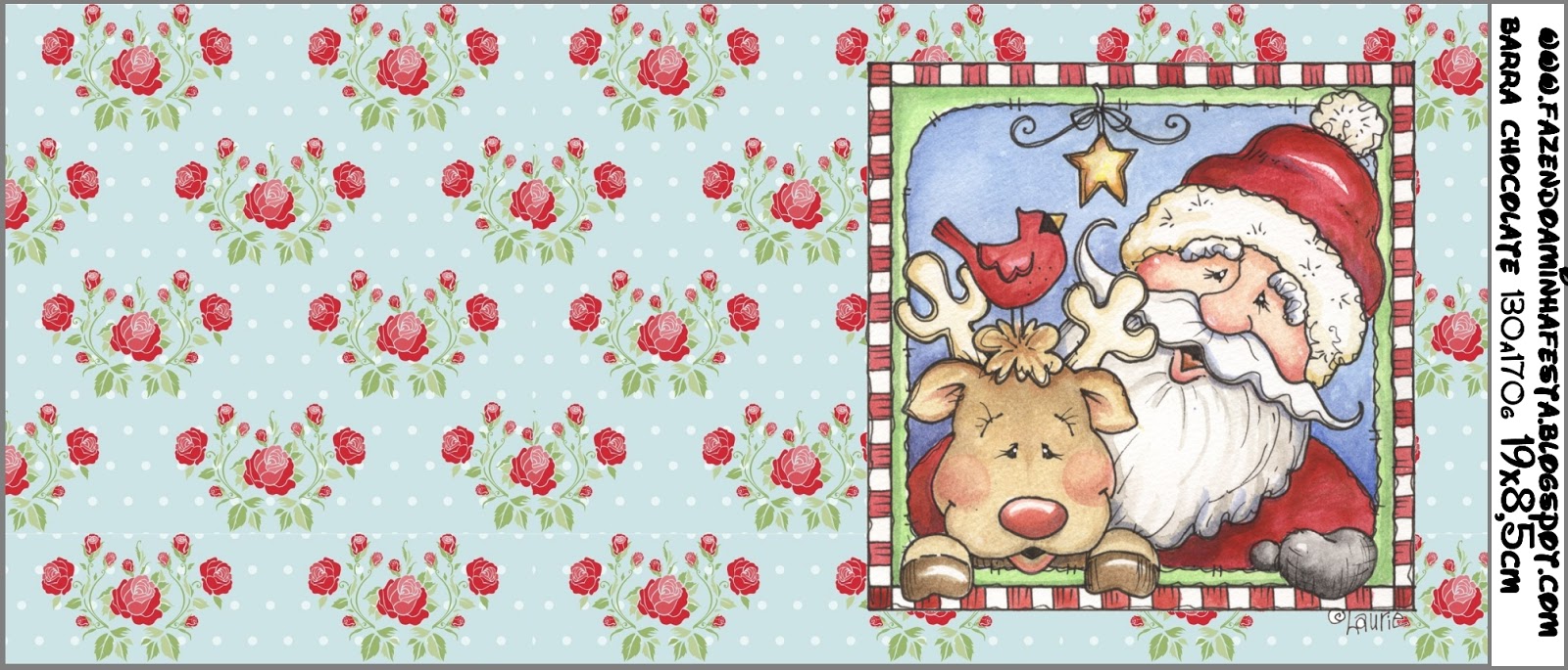 Chocolate 130 a 170g Natal com Papai Noel Azul e Vermelho com Flores: