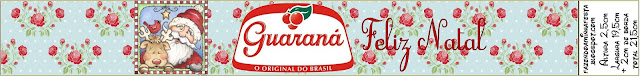 Rótulo Guaraná Caçulinha Natal com Papai Noel Azul e Vermelho com Flores: