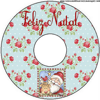 CD DVD Natal com Papai Noel Azul e Vermelho com Flores:
