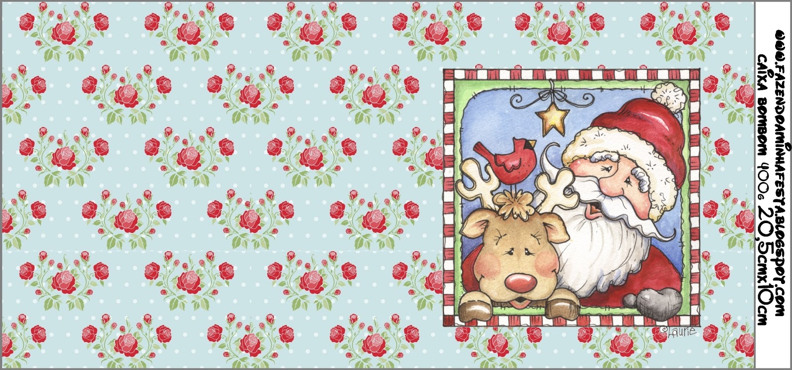 Caixa Bombom Natal com Papai Noel Azul e Vermelho com Flores:
