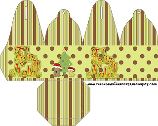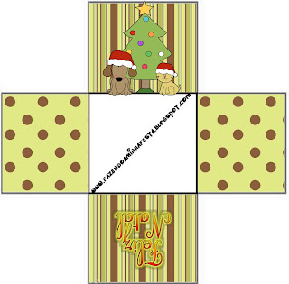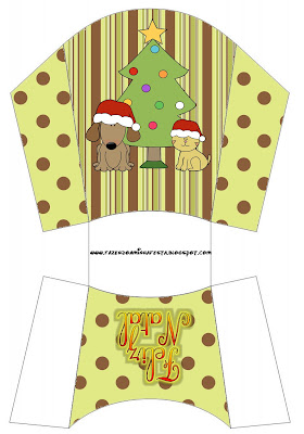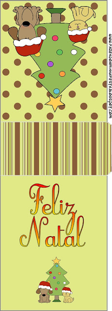 Convite Caixa Fundo Natal Gato e Cachorro Poá Marrom e Verde: