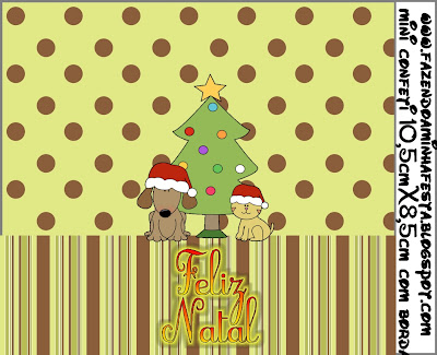 Rótulo Mini Confeti Natal Gato e Cachorro Poá Marrom e Verde: