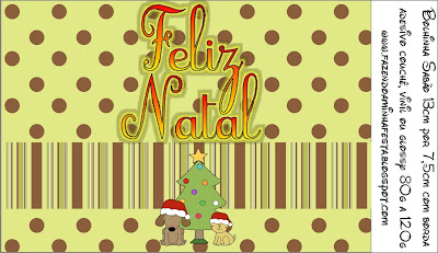 Rótulo Pastilha Garoto Natal Gato e Cachorro Poá Marrom e Verde: