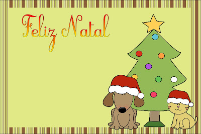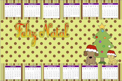 Convite Calendário 2013 Natal Gato e Cachorro Poá Marrom e Verde: