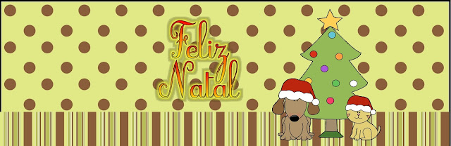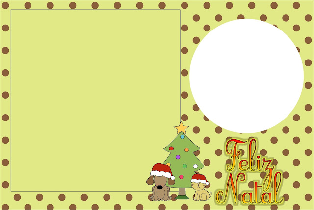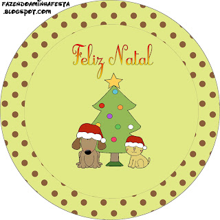 Natal Gato e Cachorro Poá Marrom e Verde – Kit Completo com molduras para convites, rótulos para guloseimas, lembrancinhas e imagens!