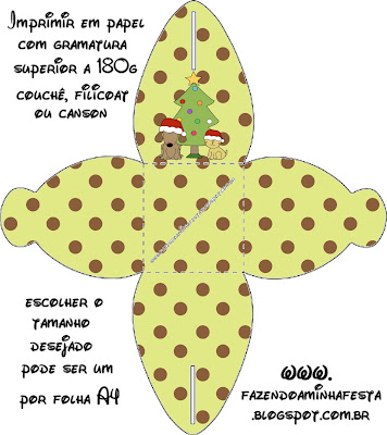 Caixa Bombom Natal Gato e Cachorro Poá Marrom e Verde: