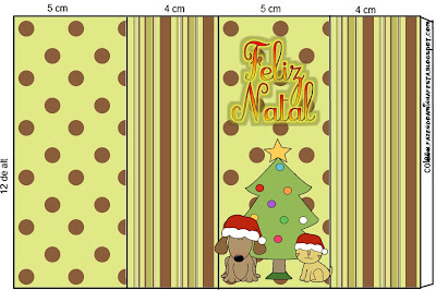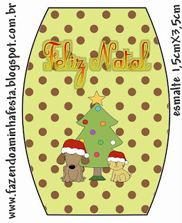 Rótulo Tubetes Natal Gato e Cachorro Poá Marrom e Verde: