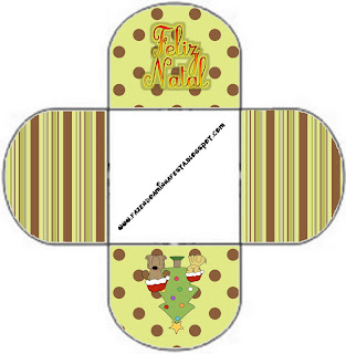 Caixa Sabonete Natal Gato e Cachorro Poá Marrom e Verde: