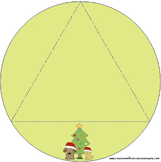 Convite Triangular Transpassado Frente Natal Gato e Cachorro Poá Marrom e Verde: