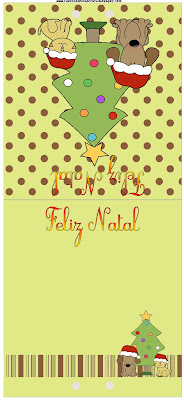 Envelope Fritas Natal Gato e Cachorro Poá Marrom e Verde: