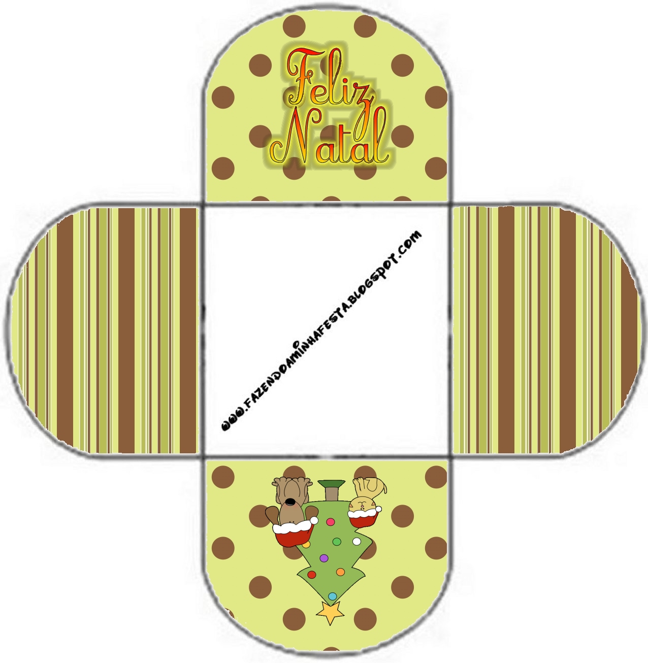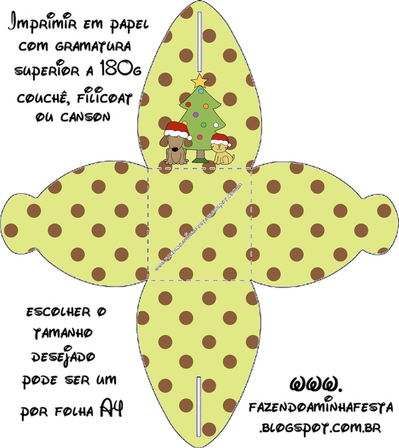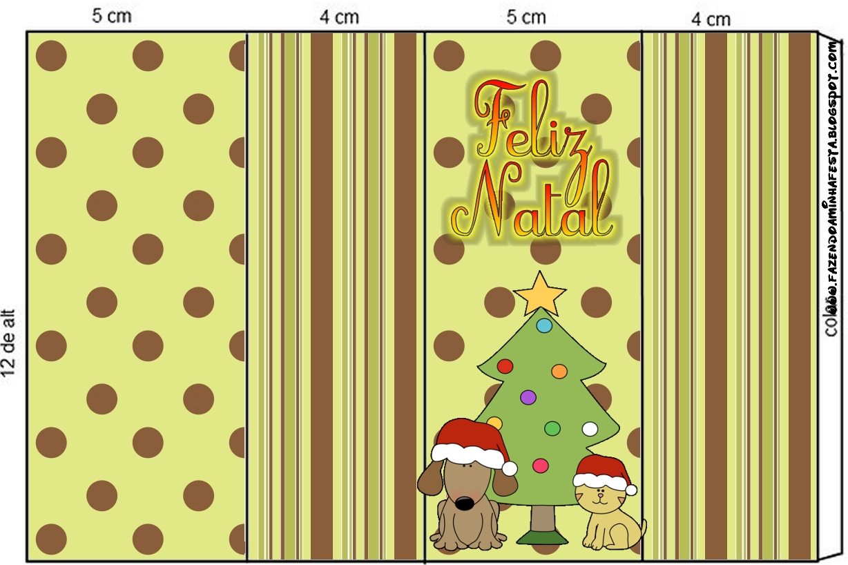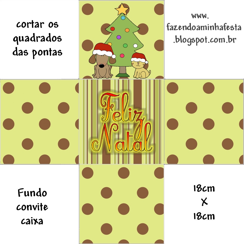 Convite Caixa Fundo Natal Gato e Cachorro Poá Marrom e Verde: