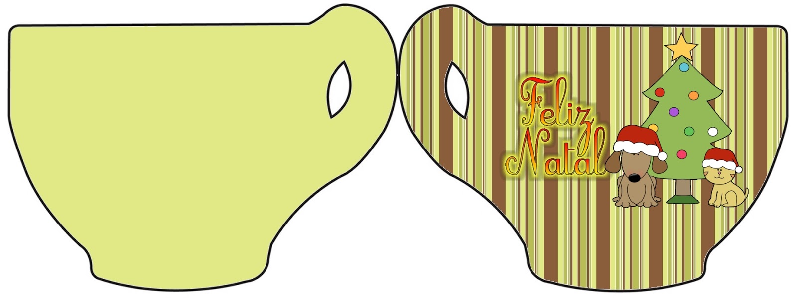 Convite Xícara Natal Gato e Cachorro Poá Marrom e Verde: