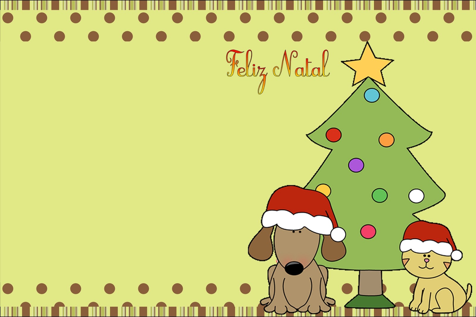 Fundos e Imagens Natal Gato e Cachorro Poá Marrom e Verde: