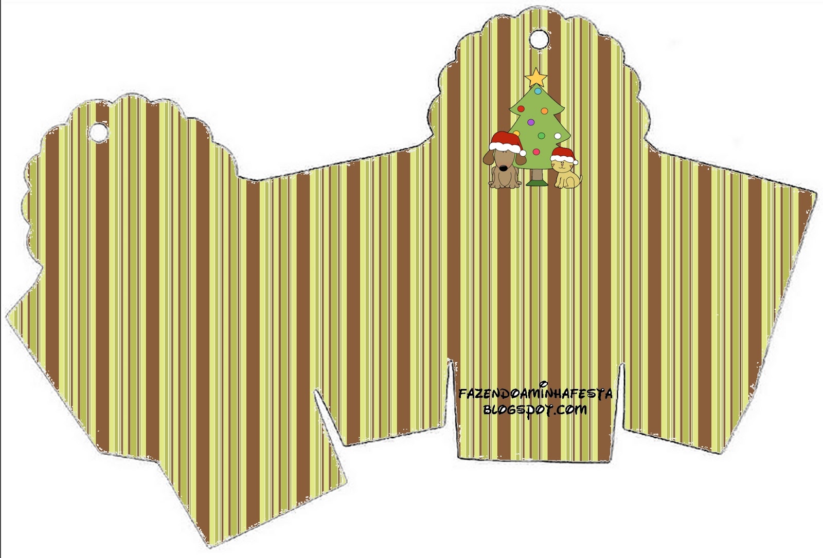 Natal Gato e Cachorro Poá Marrom e Verde – Kit Completo com molduras para convites, rótulos para guloseimas, lembrancinhas e imagens!