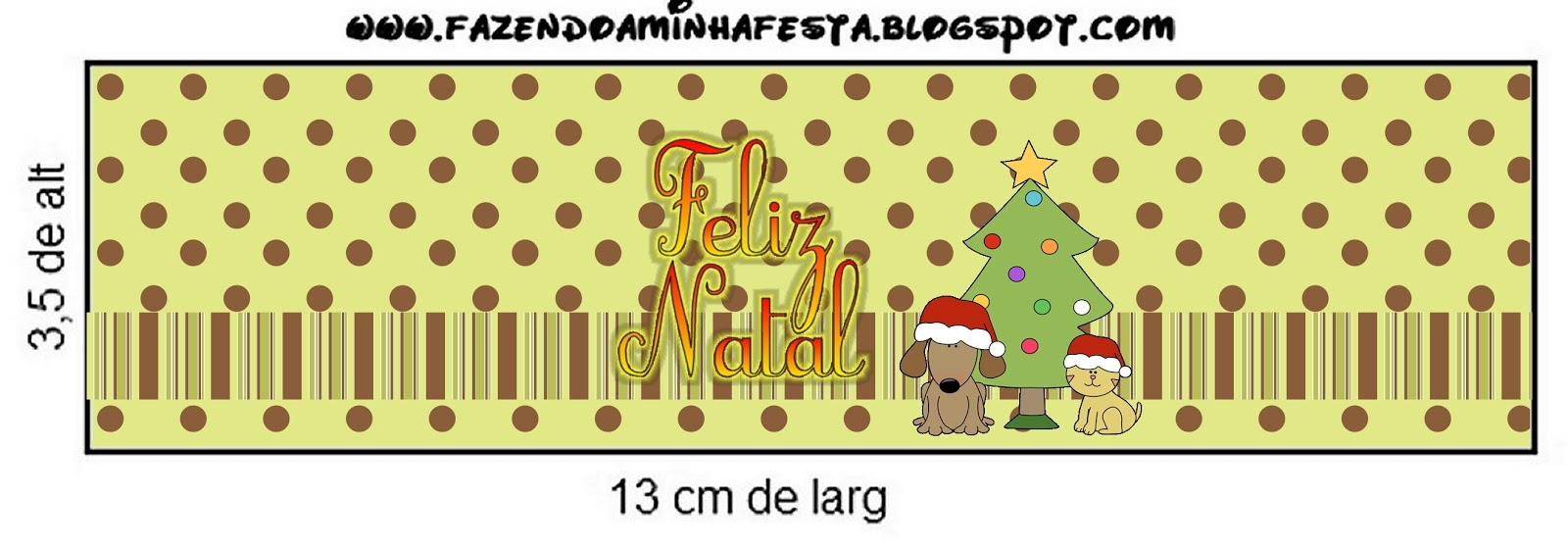 Rótulo Tubetes Natal Gato e Cachorro Poá Marrom e Verde: