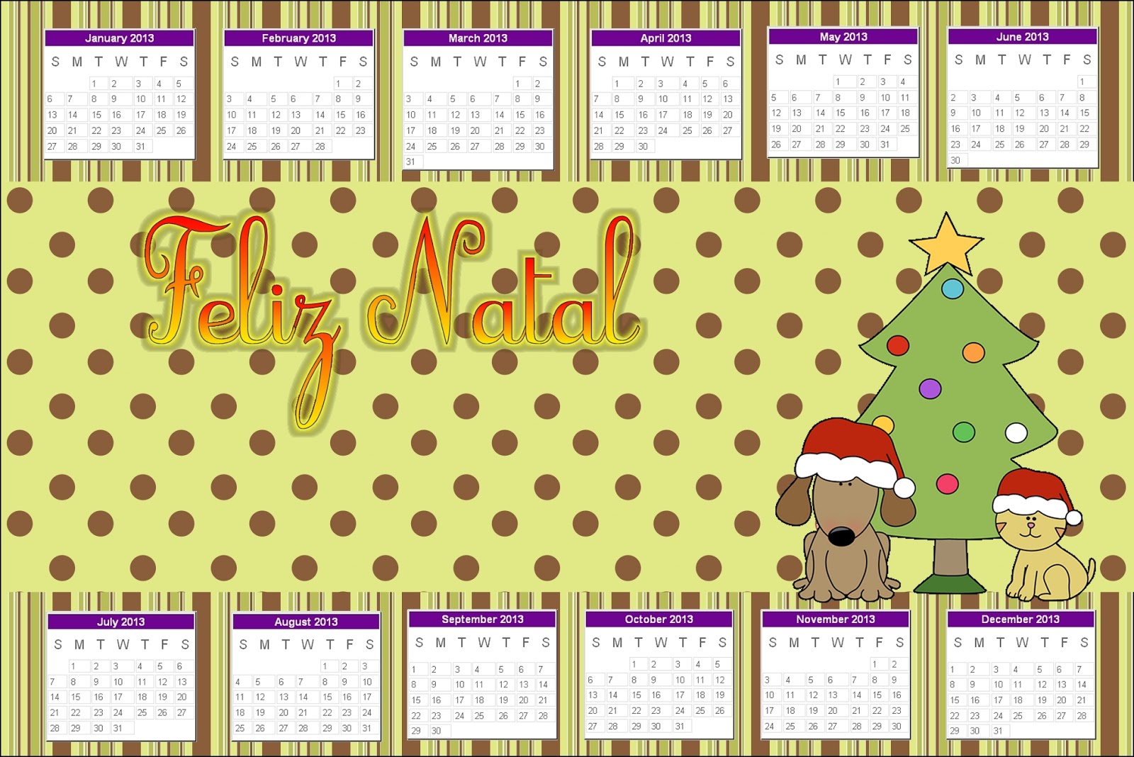 Convite Calendário 2013 Natal Gato e Cachorro Poá Marrom e Verde: