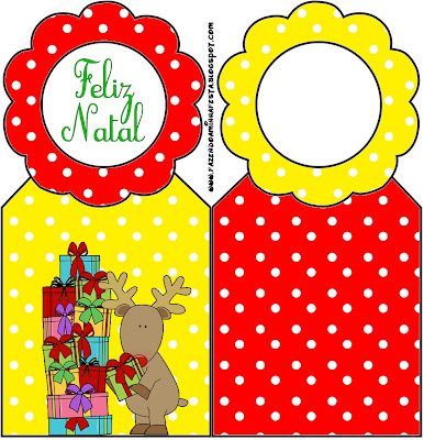 Tag Agradecimento Natal Rena Poá Vermelho e Amarelo: