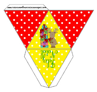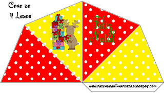 Cone Guloseimas 4 lados Natal Rena Poá Vermelho e Amarelo:
