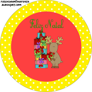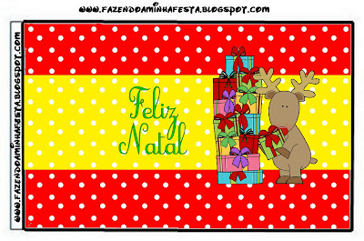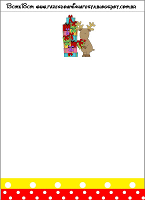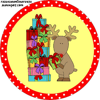 Natal Rena Poá Vermelho e Amarelo – Kit Completo com molduras para convites, rótulos para guloseimas, lembrancinhas e imagens!