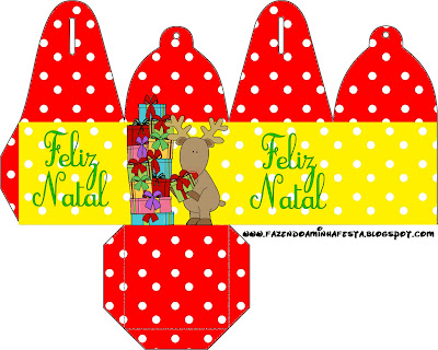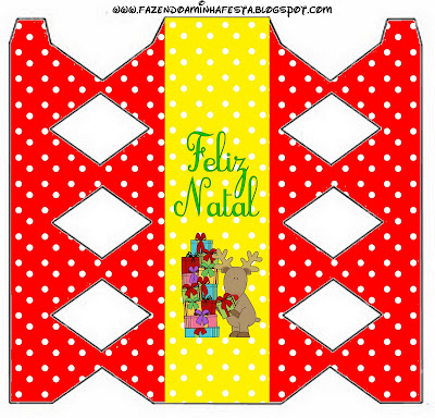 Caixa Fatia Natal Rena Poá Vermelho e Amarelo:
