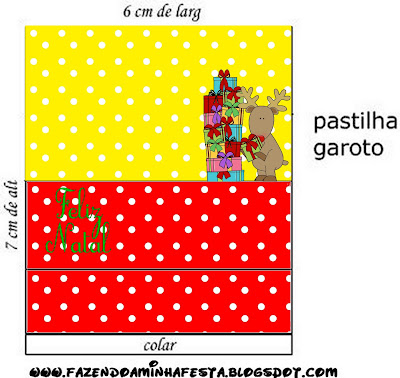 Rótulo Pastilha Garoto Natal Rena Poá Vermelho e Amarelo: