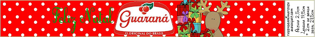 Rótulo Guaraná Caçulinha Natal Rena Poá Vermelho e Amarelo: