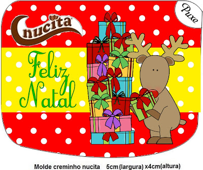 Rótulo Creminho Nucita Natal Rena Poá Vermelho e Amarelo: