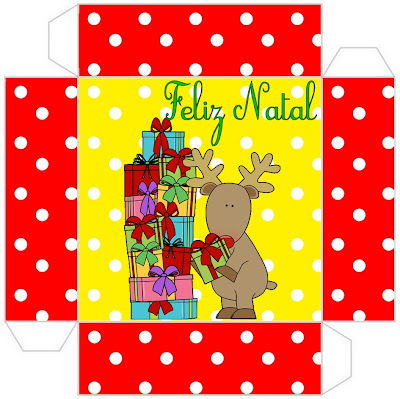 Caixa Bom Bom Natal Rena Poá Vermelho e Amarelo: