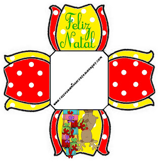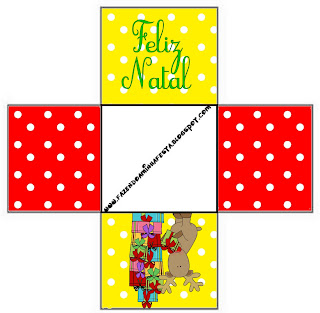 Caixa Bombom Natal Rena Poá Vermelho e Amarelo: