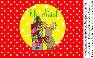 Rótulo Lata de Leite Natal Rena Poá Vermelho e Amarelo: