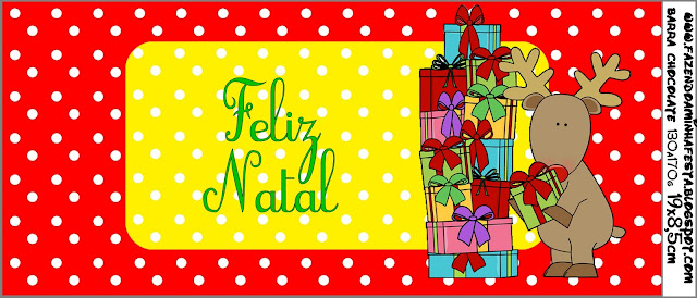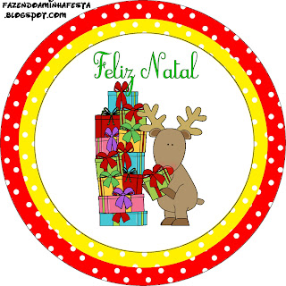 Rótulo Mini Confeti Natal Rena Poá Vermelho e Amarelo: