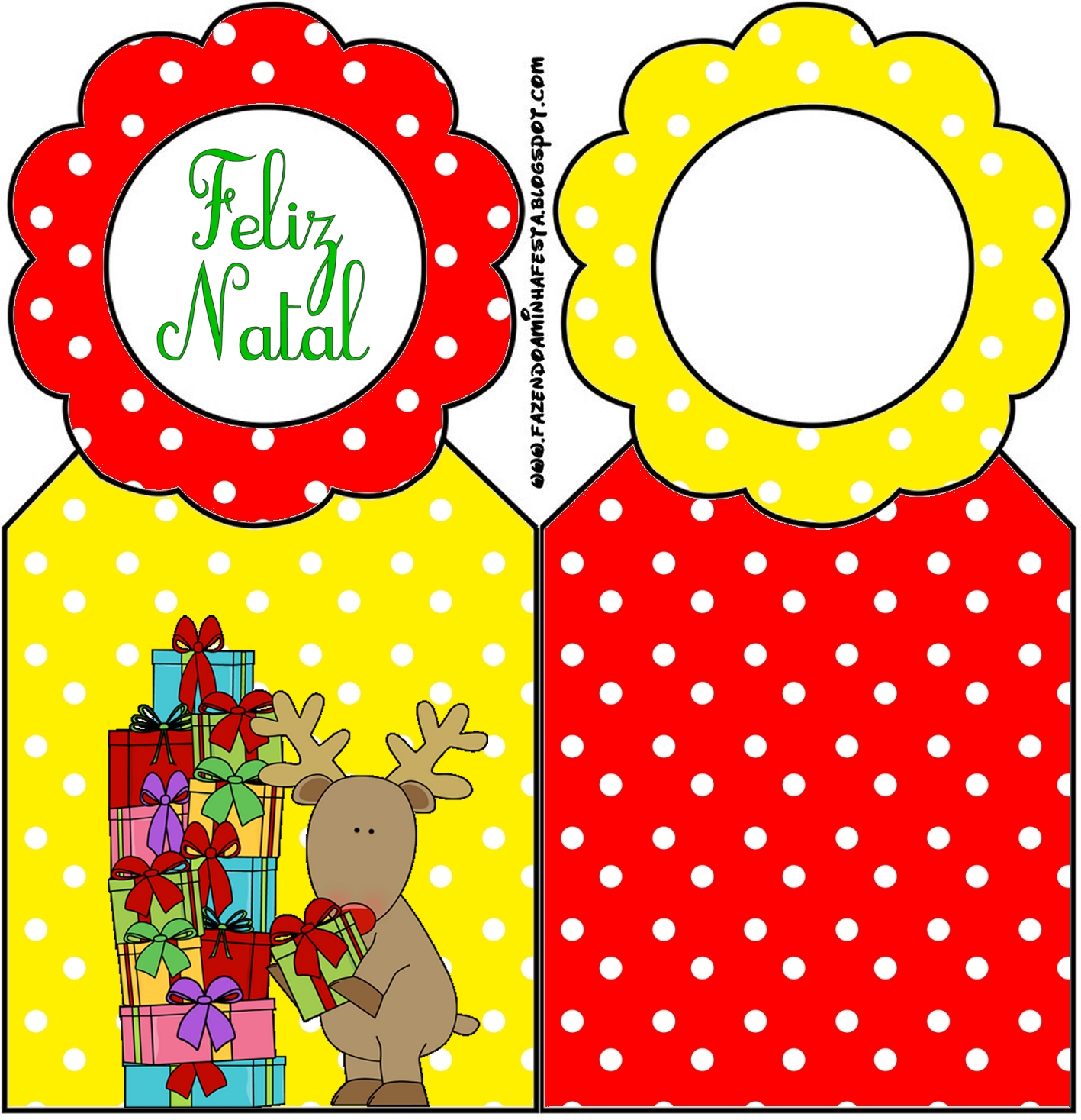 Tag Agradecimento Natal Rena Poá Vermelho e Amarelo: