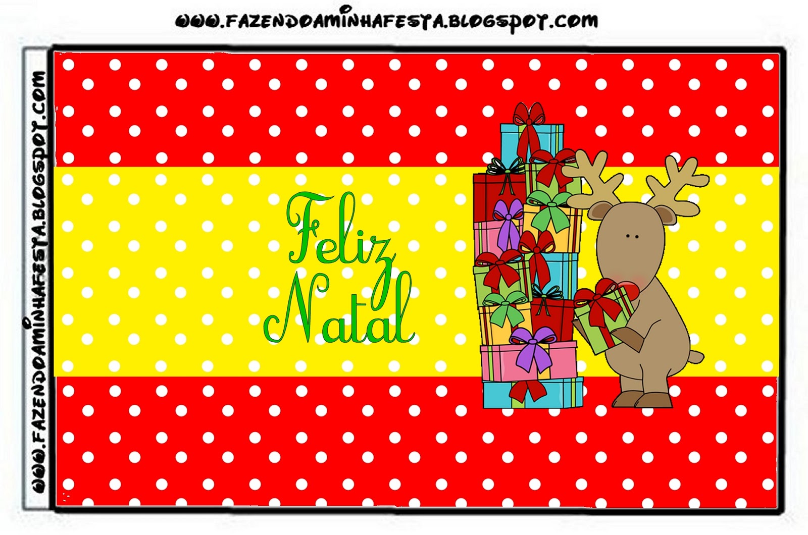 Natal Rena Poá Vermelho e Amarelo – Kit Completo com molduras para convites, rótulos para guloseimas, lembrancinhas e imagens!