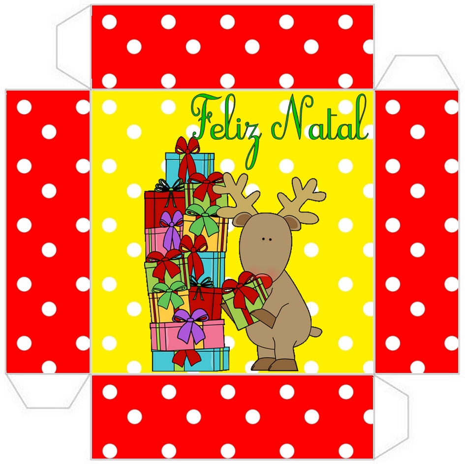 Caixa Bom Bom Natal Rena Poá Vermelho e Amarelo: