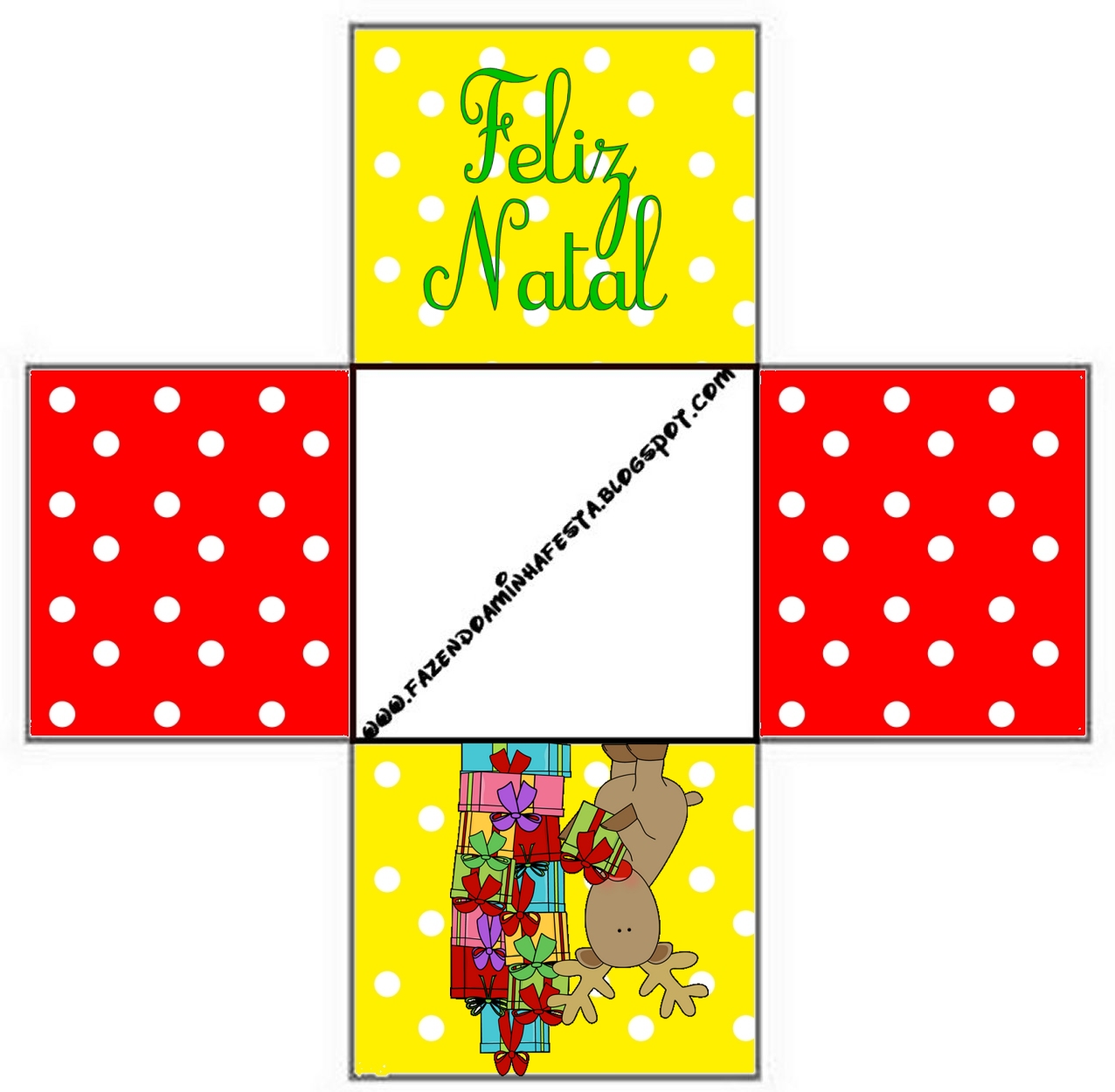Convite Caixa Tampa Natal Rena Poá Vermelho e Amarelo: