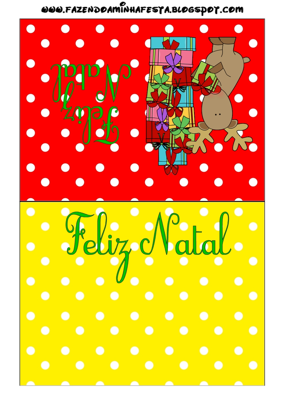 Convite Pirulito qualquer tamanho Natal Rena Poá Vermelho e Amarelo: