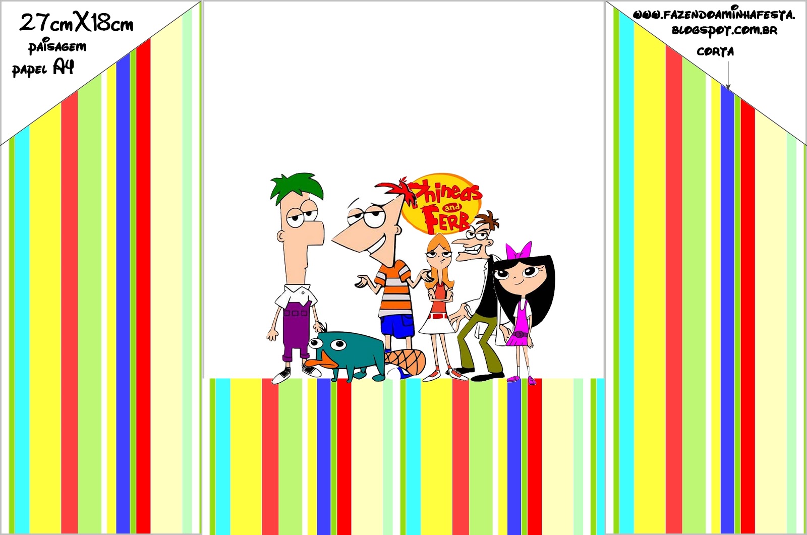 Convite Caixa Fundo Phineas e Ferb: