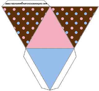 Cone Guloseimas 4 lados Poá Marrom Azul e Rosa: