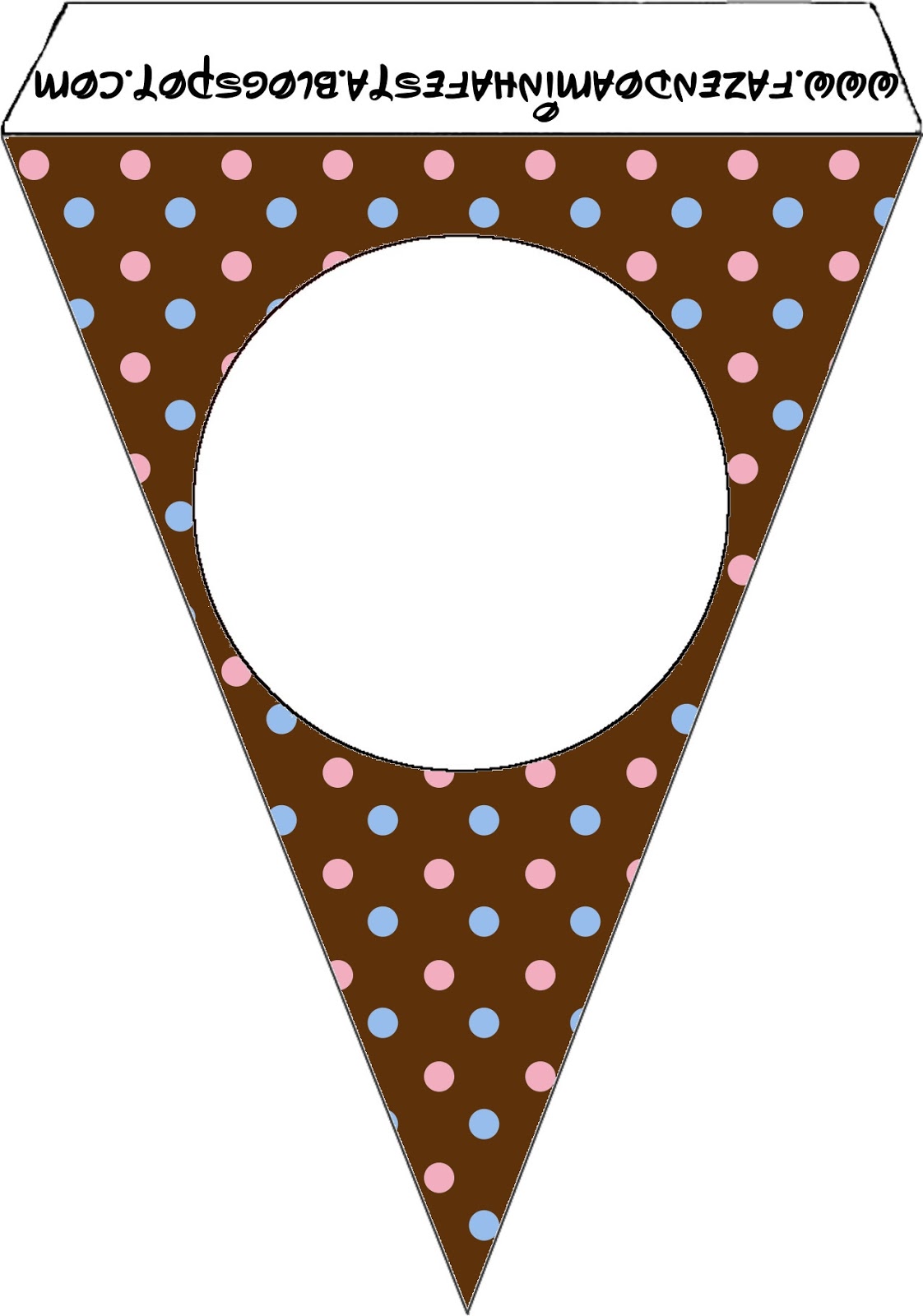 Bandeirinha Sanduiche Poá Marrom Azul e Rosa: