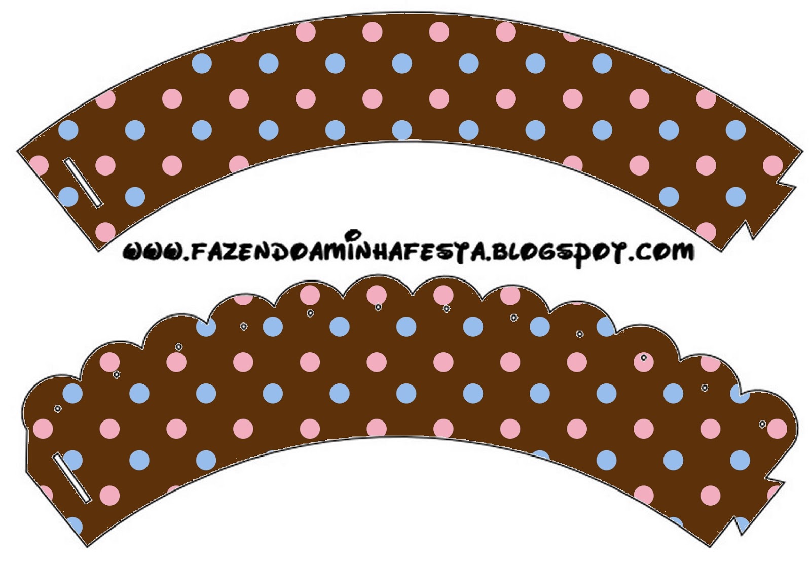 Saias Wrappers para Cupcakes Poá Marrom Azul e Rosa: