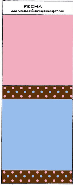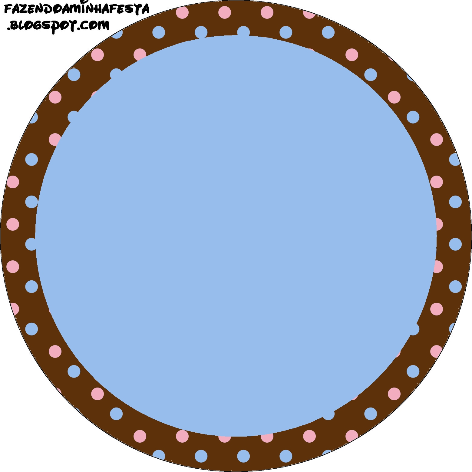 Poá Marrom Azul e Rosa – Kit Completo com molduras para convites, rótulos para guloseimas, lembrancinhas e imagens!