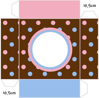 Caixa Bombom Poá Marrom Azul e Rosa: